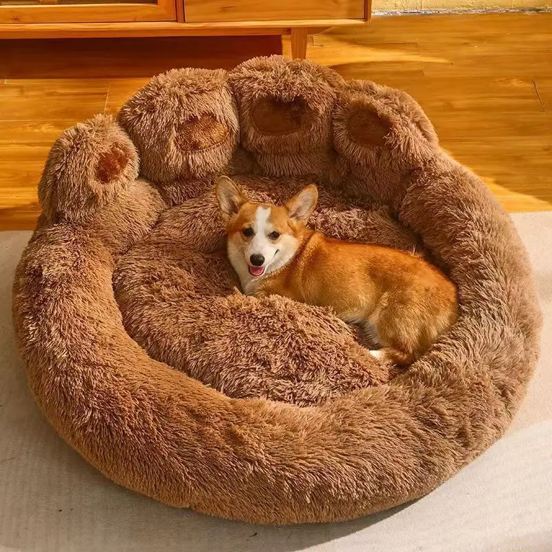 Fluffy Dog Bed Warm Plush Round Pet Bed with Raised Edges Comfy for Pets Best Pet Bed Home